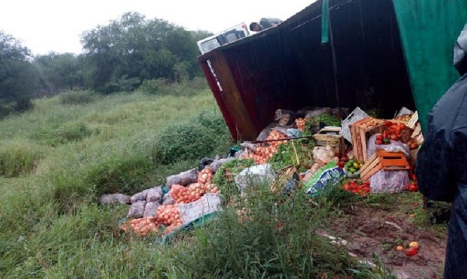 Volcó un camión cargado con verduras en Monte Comán