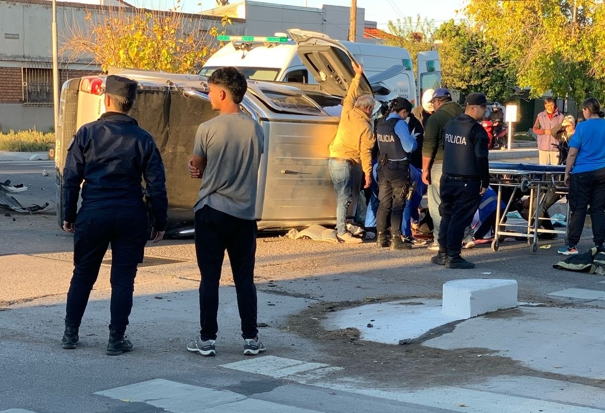 Una camioneta terminó volcada tras chocar contra la rotonda de avenidas Moreno y Granaderos