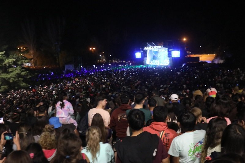 El show de Valentino Merlo y gran parte de la previa protagonizada por artistas sanrafaelinos, se desarrolló con más de 60.000 personas en el predio situado detrás del teatro griego Chacho Santa Cruz, una cifra sin precedentes para un espectáculo público en nuestro departamento.