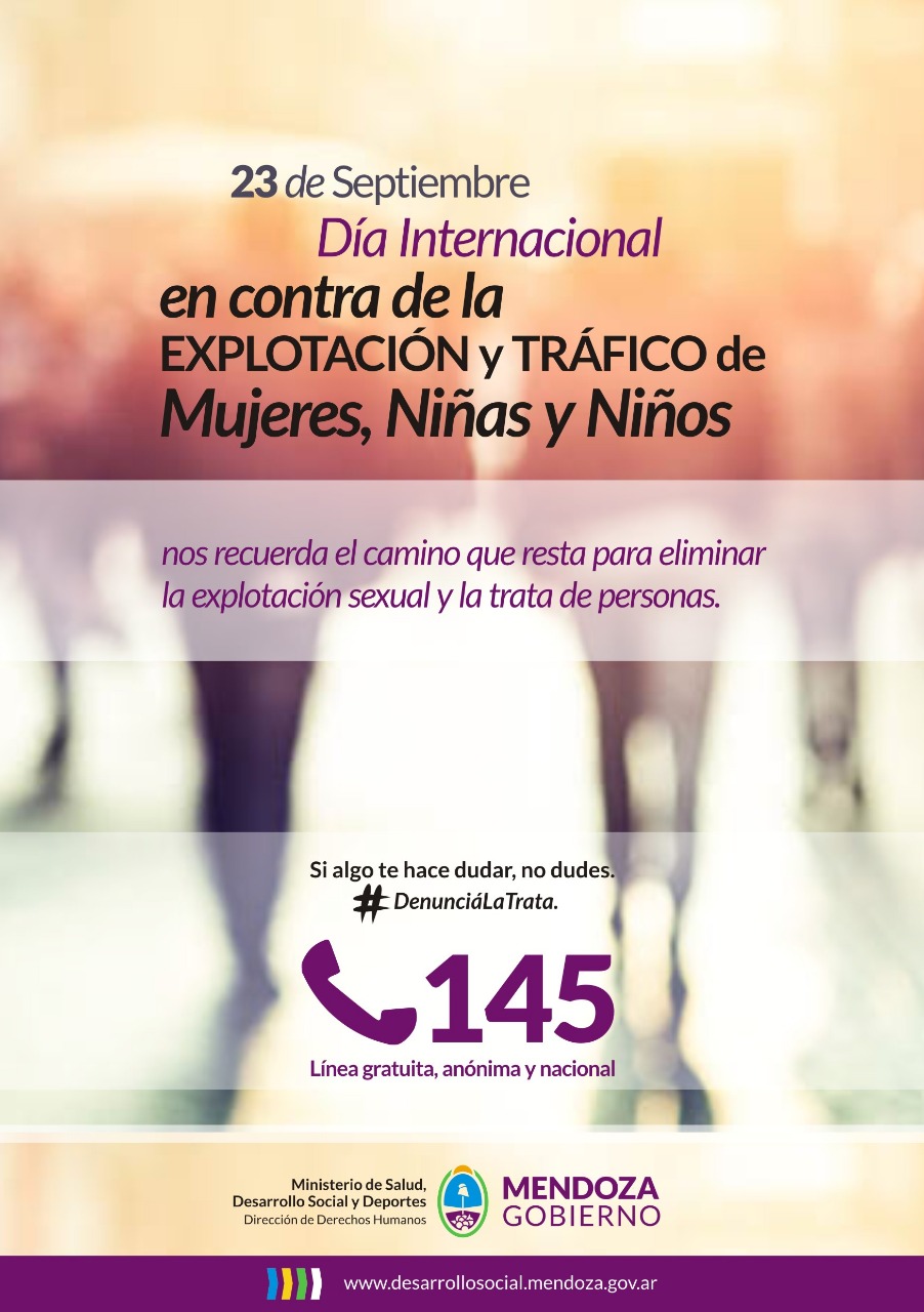 Cerca de conmemorarse el Día Internacional contra la explotación sexual y el tráfico de mujeres, niñas y niños, el Ministerio de Salud, Desarrollo Social y Deportes, a través de la Dirección de Derechos Humanos, lanza una campaña de sensibilización sobre esta problemática. Esta dependencia ha brindado asistencia en 35 casos registrados en estos últimos dos años.