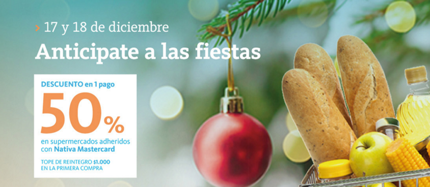El beneficio podrá ser utilizado una semana antes de Navidad (el lunes 17 y el martes 18) y se hará efectivo solo para aquellos clientes que tengan tarjeta Nativa Mastercard.