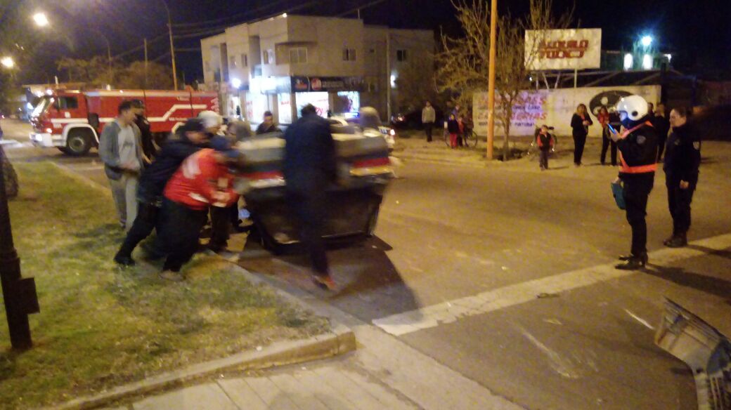 Producto del impacto el VW Senda terminó volcado y la persona de 22 años de edad que lo conducía fue asistida y trasladada al hospital Schestakow por el Servicio Coordinado de Emergencias.