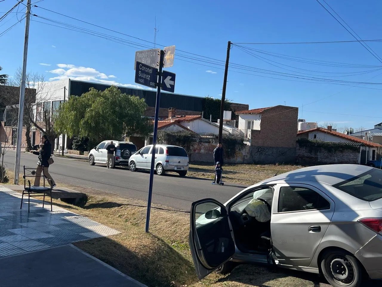En la mañana de hoy, se registró un incidente vial en la intersección de las calles República de Siria y Cnel. Suárez, involucrando a un automóvil Chevrolet Prisma y una camioneta Jeep.