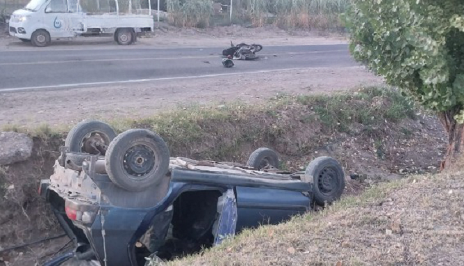 Según testigos, el accidente ocurrió cuando una moto y un Renault Clio, que presuntamente circulaban por Cubillos hacia Ruta 143, intentaron sobrepasar un vehículo que estaba detenido en llantas.