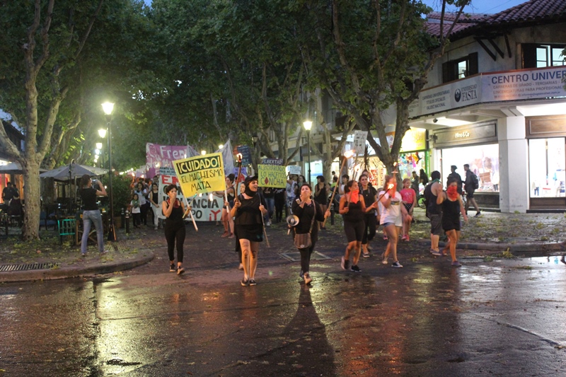 Más tarde hubo una concentración en el kilómetro cero y una marcha que fue por avenida Yrigoyen hasta calle Pellegrini, girando por Belgrano para culminar en la Municipalidad. Participaron distintas organizaciones sociales y políticas, con banderas y pancartas pidiendo entre otras cosas igualdad de derechos y políticas claras contra la violencia de género.