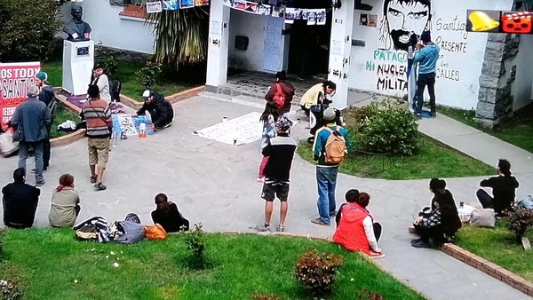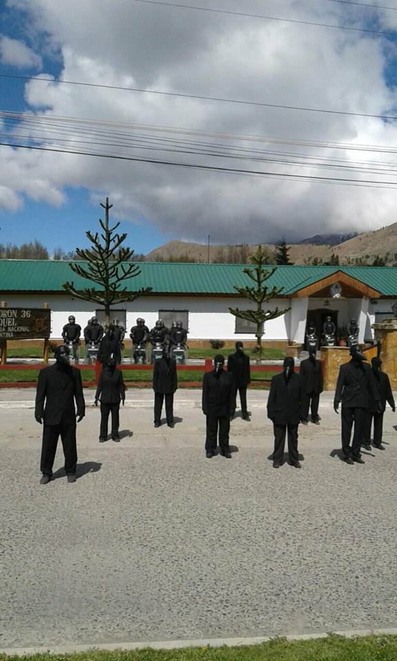 Cerca de las dos de la tarde, unas 40 personas vestidas de negro, con máscaras e instrumentos musicales se movilizaron al escuadrón 36 de la Gendarmería en la ciudad chubutense para pedir el esclarecimiento de la desaparición de Santiago.