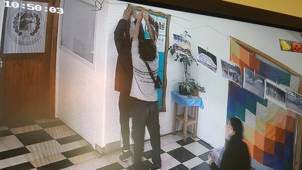 Al mismo tiempo, unas 20 personas se presentaron en la municipalidad de El Bolsón con el objetivo de entregarle un escrito al intendente de esa localidad rionegrina, Bruno Pogliano. Durante la manifestación, presuntos integrantes de la agrupación RAM realizaron pintadas en el frente del edificio del municipio, y colgaron una serie de fotografías en el hall.