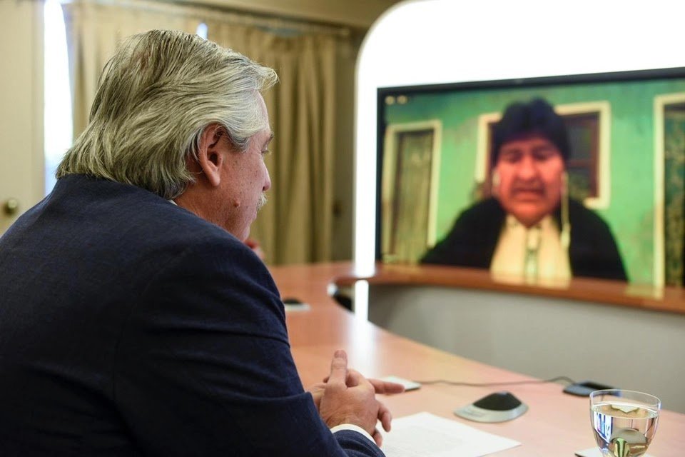 En ese contexto, el mandatario mantuvo hoy una videoconferencia, desde la Residencia de Olivos, con Evo Morales, el senador Leonardo Loza y el diputado Gualberto Arispe Maita, legisladores que promueven la iniciativa junto a sus pares Santos Mamani Espinoza y Grobert Nogales Grageda, quienes representan en la Asamblea Legislativa Plurinacional al gobernante Movimiento al Socialismo (MAS).