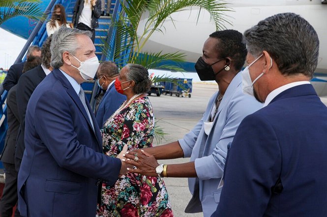 Luego de una escala por Madrid, que solo le dio tiempo al mandatario para cenar unas tapas en la embajada, por la tarde del lunes Fernández y su comitiva arribaron a Bridgetown, capital de Barbados. Mañana martes el Jefe de Estado se reunirá con la primera ministra de ese país, Mía Mottley. “Fue algo que me impuse cuando asumí la presidencia de la Celac. El Caribe insular pasa un momento muy complejo por el cambio climático. Pude escuchar a la primera ministra en dos ocasiones y llamó mi atención la complejidad del problema. Considero que los latinoamericanos no le prestamos atención suficiente al tema y por eso quise dar una señal muy clara de mi preocupación con esta primera salida como presidente de la Celac”, indicó el Presidente.