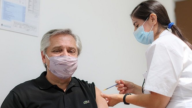 El mandatario recibió la vacuna en su brazo izquierdo, aplicada por la licenciada en enfermería Marcela Yanni, ocasión en la que reafirmó “la seguridad y eficacia de la vacuna” y reiteró que su “prioridad es que llegue a la mayoría de los argentinos en el menor tiempo posible”.