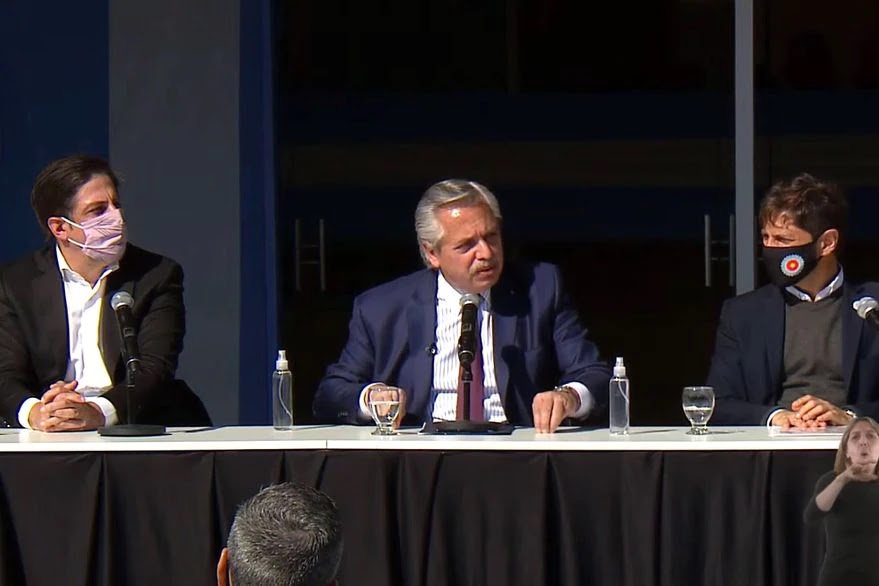 Del acto que el Presidente encabezó en La Matanza, el distrito con mayor caudal electoral del conurbano, participó también el gobernador bonaerense, Axel Kicillof. El motivo era la puesta en marcha del Centro Universitario de la Innovación (CUDI), que funcionará en González Catán. Además del gobernador y el Presidente, en el estrado estuvieron los candidatos del Frente de Todos Victoria Tolosa Paz y Daniel Gollán, el intendente de La Matanza, Fernando Espinoza; la vicegobernadora bonaerense, Verónica Magario, y la ministra de Educación de la provincia, Agustina Vila.