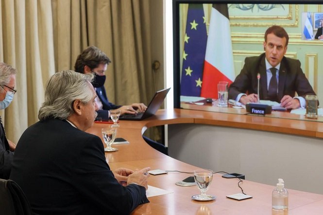El Presidente destacó además que en los últimos días mantuvo diálogo con distintos líderes mundiales. Entre ellos, el presidente de Francia, Emmanuel Macrón: “Hablamos largamente sobre la posibilidad de que el FMI flexibilice los plazos de un posible acuerdo de facilidades extendidas, de forma tal de postergar el pago de vencimientos. De esa forma podríamos disponer de más de 3000 millones de dólares”.
