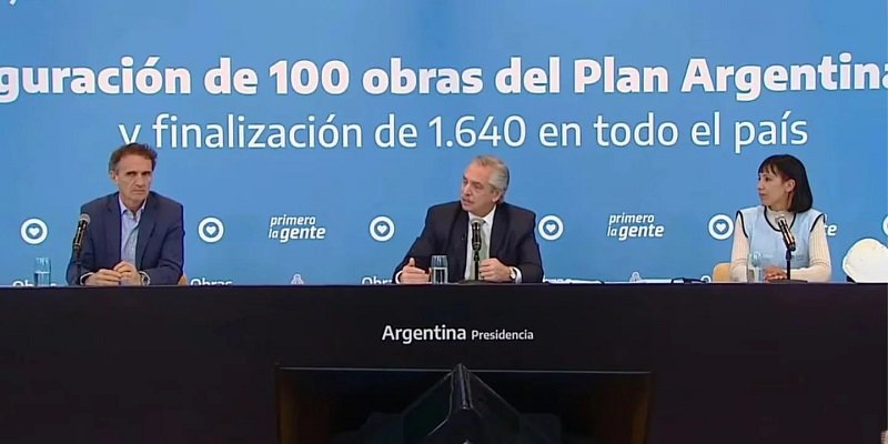 El presidente Alberto Fernández estuvo en un acto de inauguración de 100 obras públicas del plan Argentina Hace en 100 municipios.