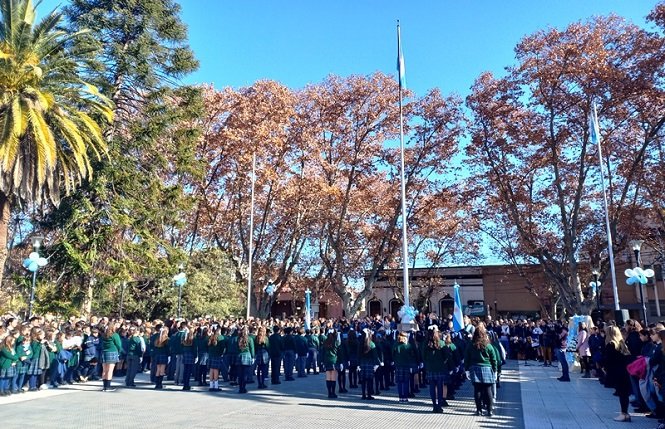 El acto comenzó pasadas las 11, con la presencia de todos los alumnos de la institución educativa de los niveles primario y secundario, además de sus familiares, reuniendo a centenares de personas en la plaza San Martín.