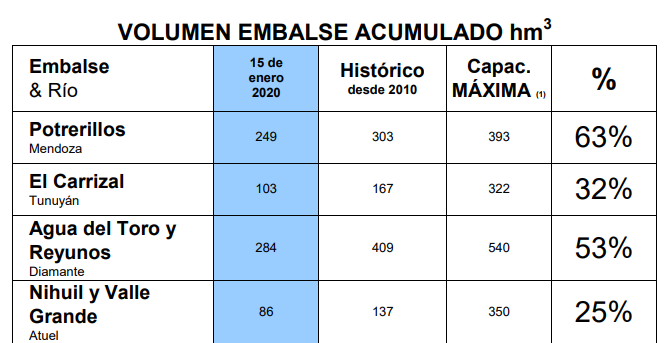 “El embalse Potrerillos, que se encuentra a un 60% y es el que mejor está en su nivel de agua. Pero el alto porcentaje de demanda de agua para el uso poblacional es muy preocupante. En el río Mendoza, que abastece al Área Metropolitana, el agua potable se está llevando casi el 40% del total del volumen del río y esto genera que se deban aplicar restricciones en otros usos, como el agro”, afirmó el superintendente General de Irrigación, Sergio Marinelli.