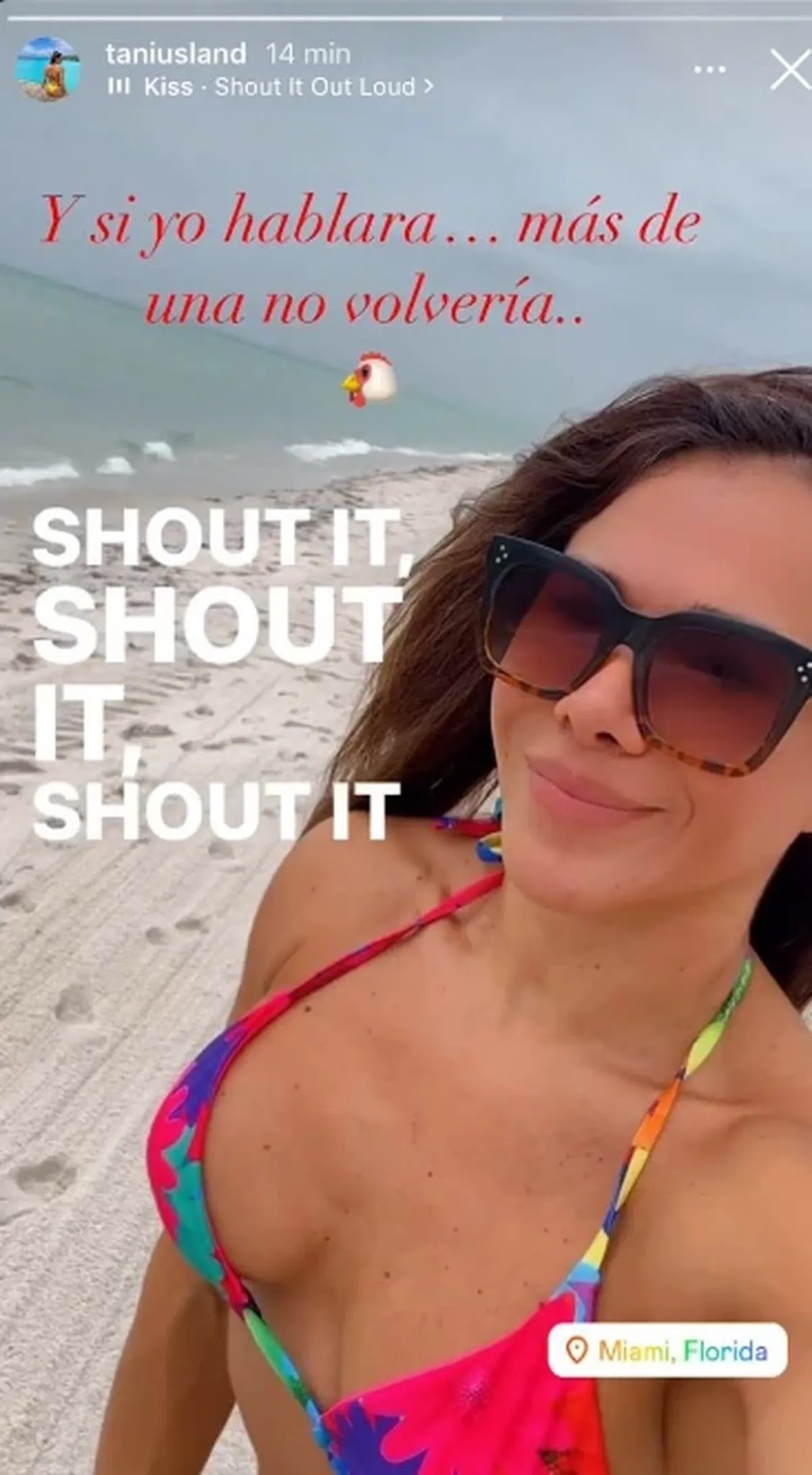 En las últimas horas se conoció un posteo explosivo de la supuesta tercera en discordia. En la publicación se la ve radiante, caminando y disfrutando de una playa en Miami. “Y si yo hablara… más de una no volvería”, expresó y sumó un emoji de una gallina.