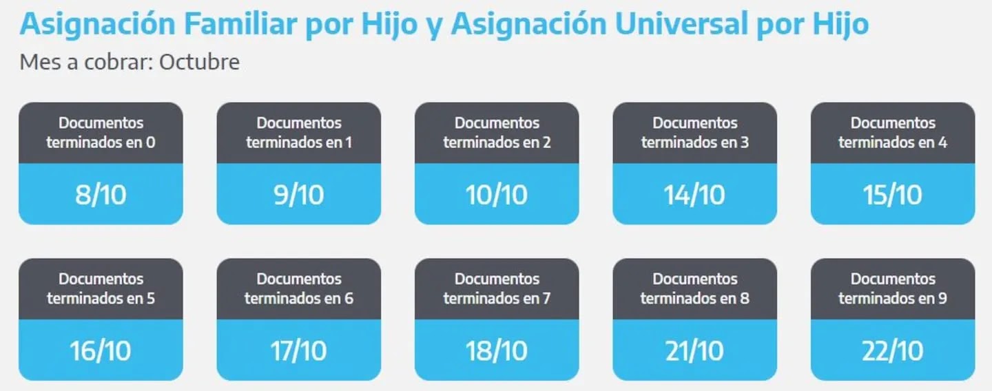 - DNI terminados en 0 y 1: jueves 10 de octubre.