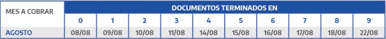 - DNI terminados en 6 y 7: lunes 14 de agosto.