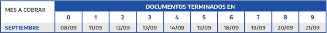 • DNI terminados en 6 y 7: viernes 15 de de septiembre.