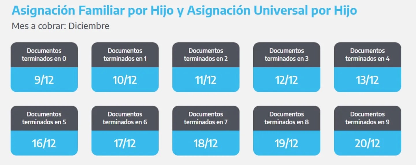 - DNI terminados en 8 y 9: lunes 16 de diciembre.
