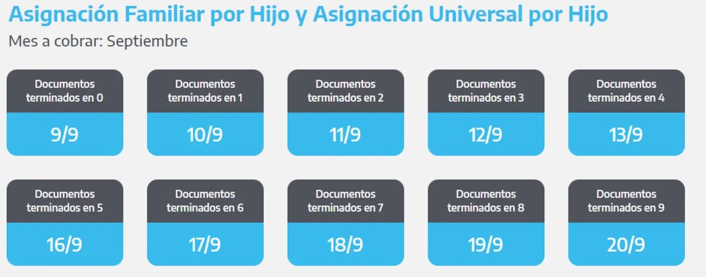 - DNI terminados en 8 y 9: lunes 16 de septiembre.