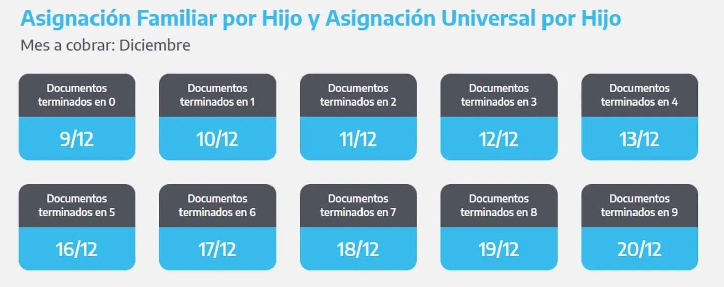 • DNI terminados en 0 y 1: martes 17 de diciembre.