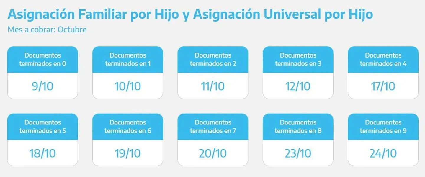 - DNI terminados en 8 y 9: miércoles 18 de octubre.