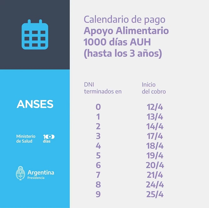 Hasta el 10 de mayo se pagan las Asignaciones de Pago Único (Matrimonio, Nacimiento y Adopción) de la primera y segunda quincena para todas las terminaciones de documento.