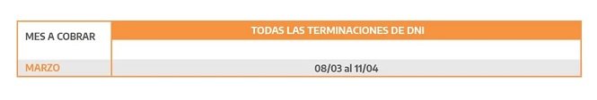 Todas las terminaciones de DNI cobran hasta el 11 de abril.