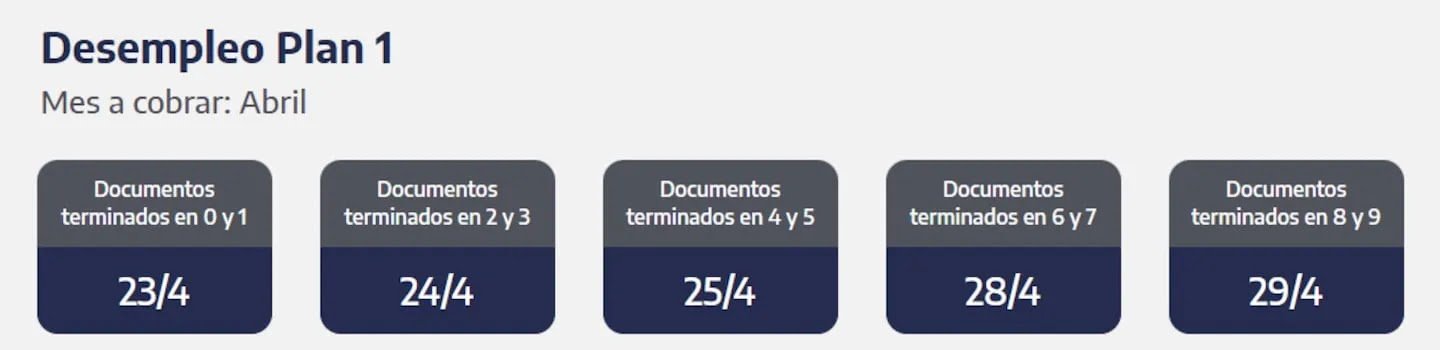 - Documentos terminados en 4 y 5: lunes 28 de abril.