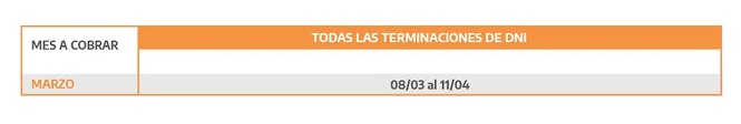 Todas las terminaciones de DNI cobran hasta el 11 de abril.