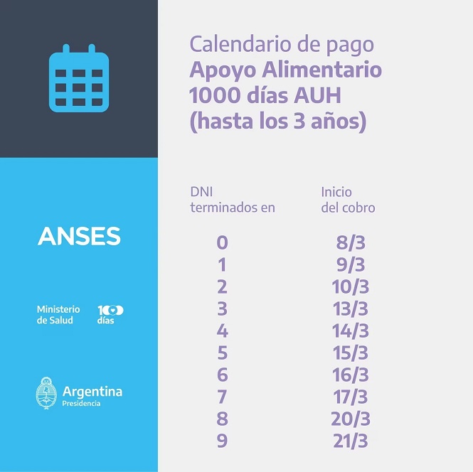 Todas las terminaciones de DNI cobran desde el 8 de marzo hasta el 11 de abril.