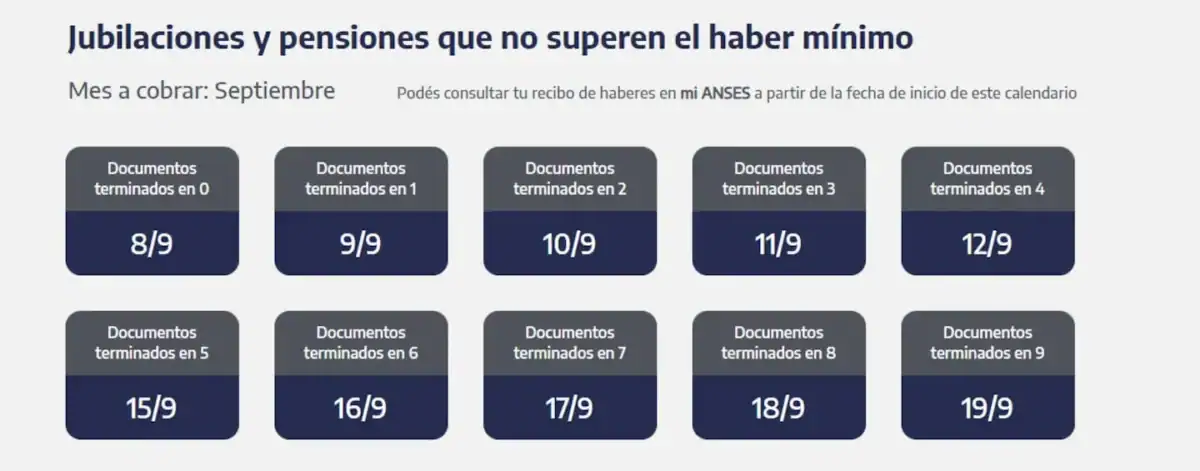 La ANSES informa el cronograma de pagos completo para este lunes 15 de septiembre de 2025 para jubilaciones, pensiones, AUH, AUE, prestaciones del SUAF y otros pagos. Cobran hoy:
