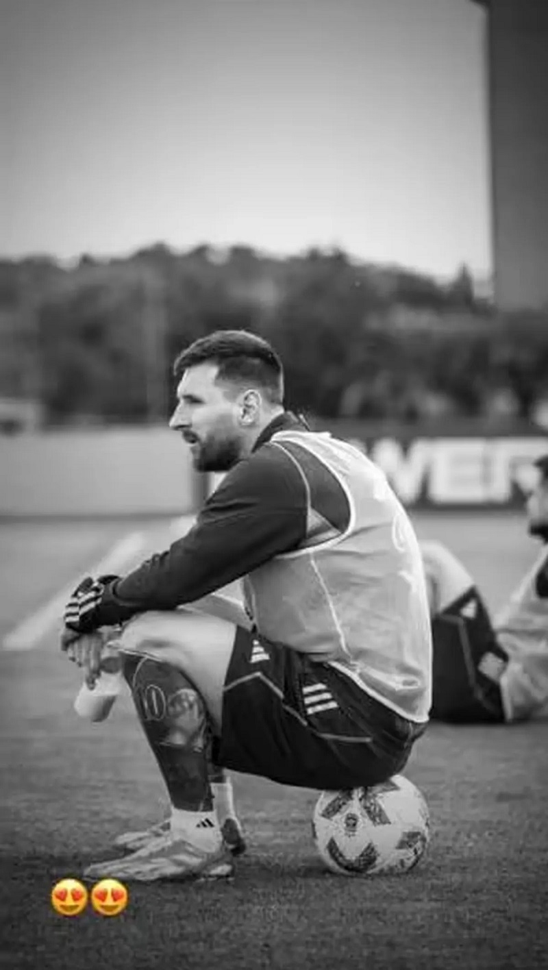 Lo hizo en sus historias de Instagram, donde posteó una foto en blanco y negro de su marido sentado sobre una pelota en una cancha, durante los entrenamientos con la Selección Argentina, que este martes volverá a jugar.