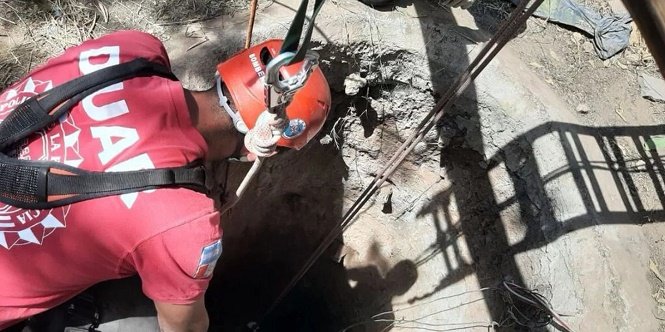 Tras el descubrimiento de los cuerpos en el fondo de un pozo de agua, los investigadores buscan en el terreno las armas con las que se cometió el doble crimen.