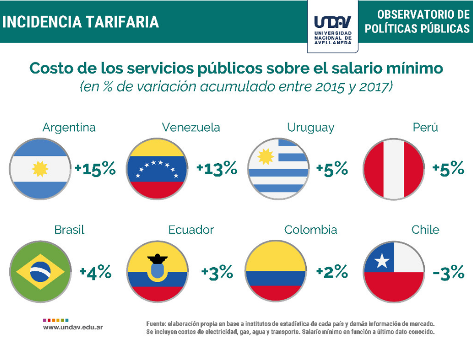 Argentina se posicionó entre los países de la región que más aumentó el servicio público por sobre el salario mínimo, vital y móvil.