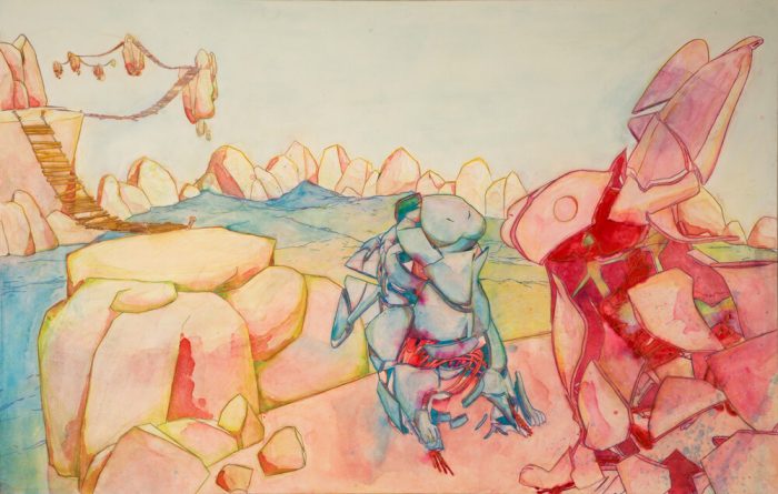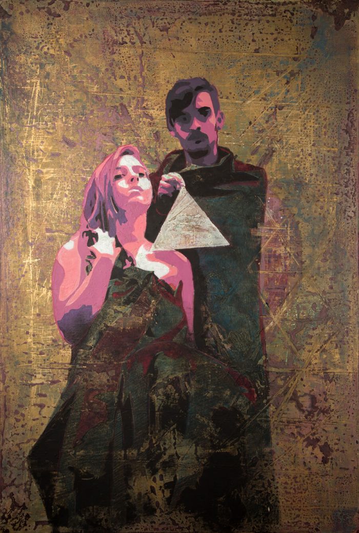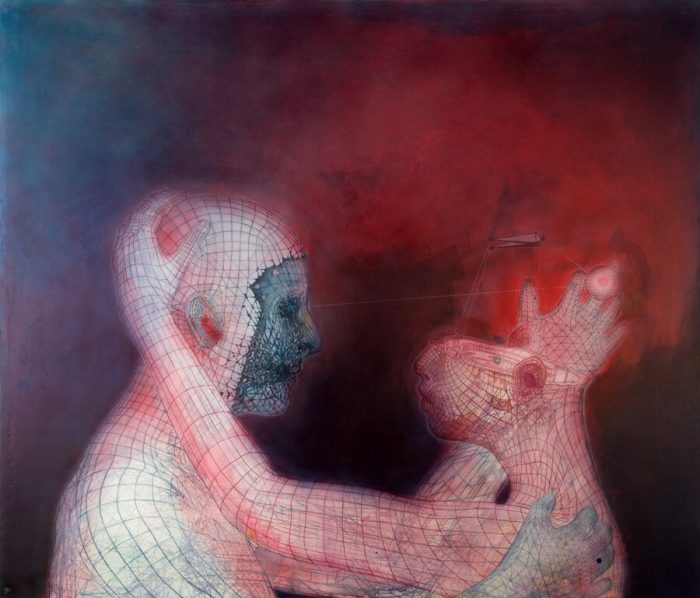 Desde esta óptica, el repertorio de personajes que el artista elige es portador de un significante más profundo, que se despliega a partir del uso de innovaciones tecnológicas, específicamente la “realidad aumentada”, aplicándola a la imagen congelada en el lienzo. La realidad aumentada consiste en combinar el mundo real con el virtual mediante un proceso informático en tiempo real. A diferencia de la realidad virtual, que introduce al usuario en un mundo diferente, la realidad aumentada permite ver el mundo real con información añadida.