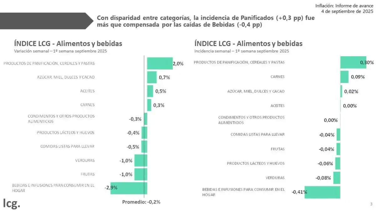 Así se desprende del trabajo de la consultora LCG que evaluó el comportamiento del precio de los alimentos entre el miércoles 27 de agosto y el miércoles 3 de septiembre.