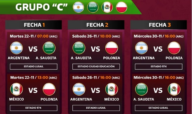 Pese a esto, cada Grupo, al tener completo sus cuatro participantes, también tiene confirmados los cruces con estadio y horario, en este caso argentino.