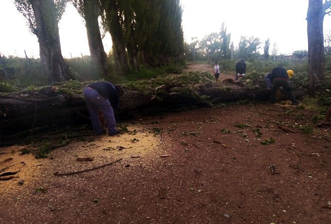 En el sector de Las Malvinas y El Escorial se registraron muchos problemas en el tendido eléctrico y árboles caídos. A causa del viento se generaron daños en algunos techos.