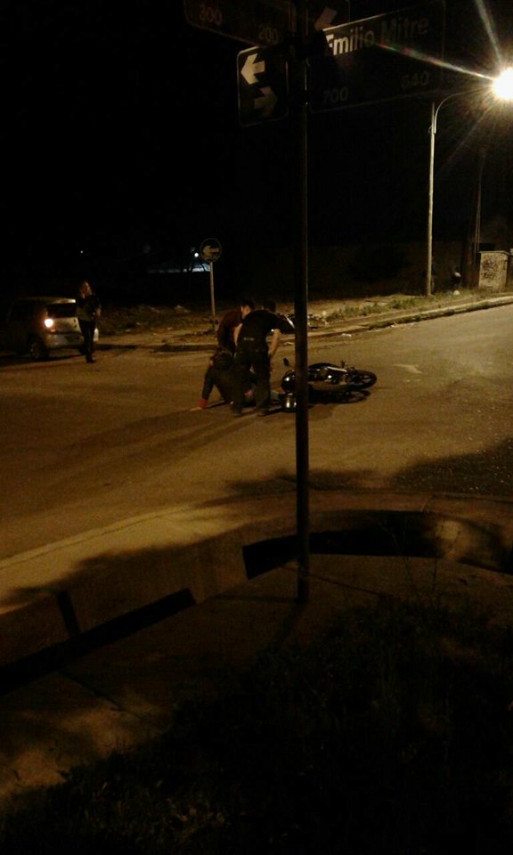 Aproximadamente a las 20:45 de esta tarde una Kangoo color gris atropelló a una motocicleta en la intersección de Emilio Mitre e Italia.
