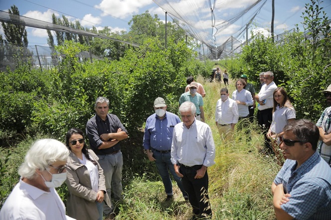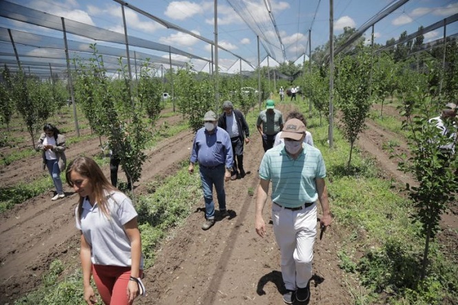 La jornada de trabajo contempló la visita al productor Mario Samper, quien obtuvo un adelanto no reembolsable (ANR) para implementación de un sistema de riego presurizado y para la lucha contra la helada por microaspersión.