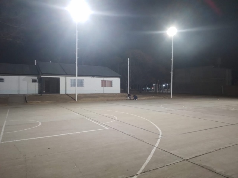 Además del Centro de Jubilados, el Municipio trabajó en los últimos días en el predio deportivo de la Villa. Allí, sobre el campo de juego para realizar múltiples disciplinas, se colocaron luces led que permiten practicar de noche con una visibilidad óptima.