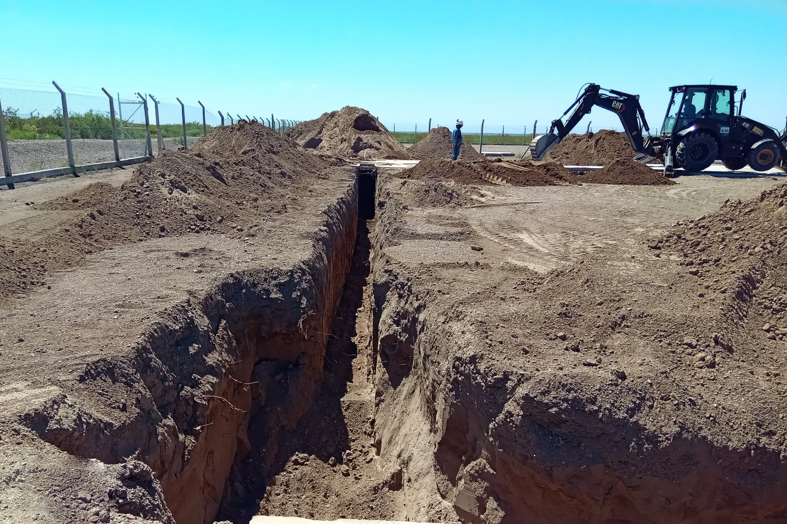 Un tercer frente se encuentra activo en la Planta de Regulación Intermedia (PRI), situada cerca del arco de ingreso sobre la Ruta Nacional 143. Allí se ejecutan trabajos eléctricos y la colocación de la cubierta del techo que protege una cámara reguladora.