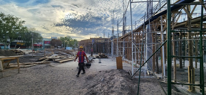 Para los primeros días de marzo, se prevé el mayor llenado de loza desde que arrancó la inversión. Se trata de casi 1.000 metros cuadrados correspondientes a locales comerciales de la planta baja. Mientras, se puede ver cómo avanza la estructura que cuenta con segundo piso y que albergará diferentes locales destinados a oficinas.