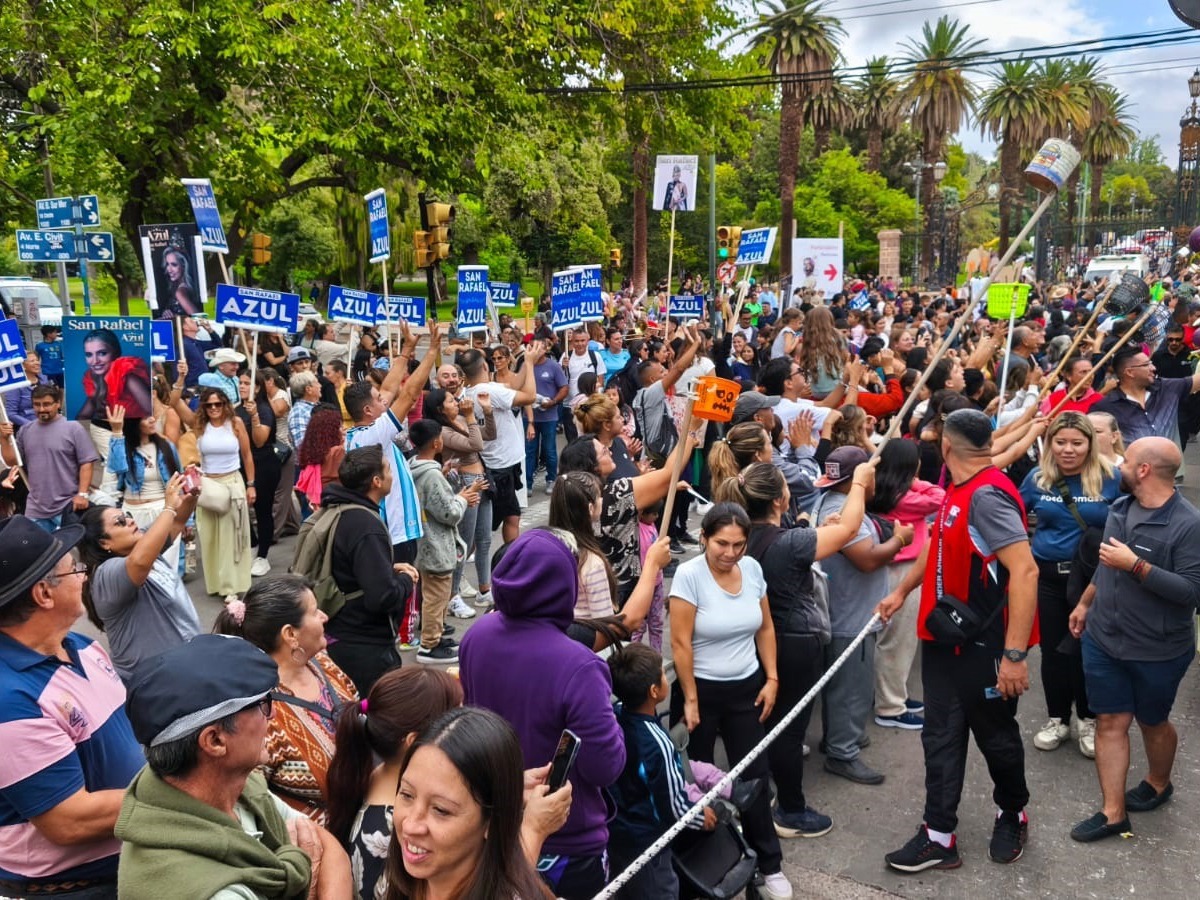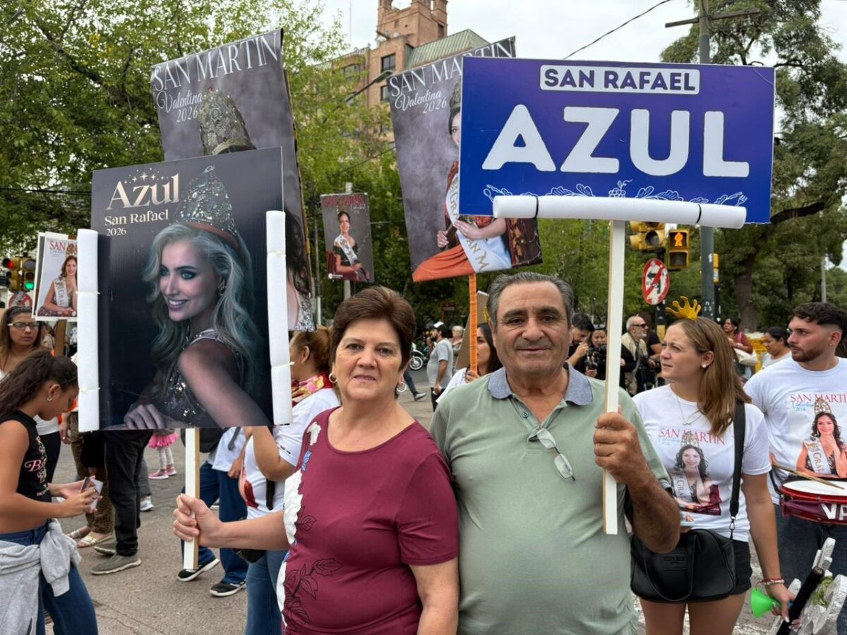 Con carteles y pancartas cientos de personas se volcaron a las calles de la capital provincial para acompañar a Azul y su corte durante el trayecto del carro sanrafaelino.