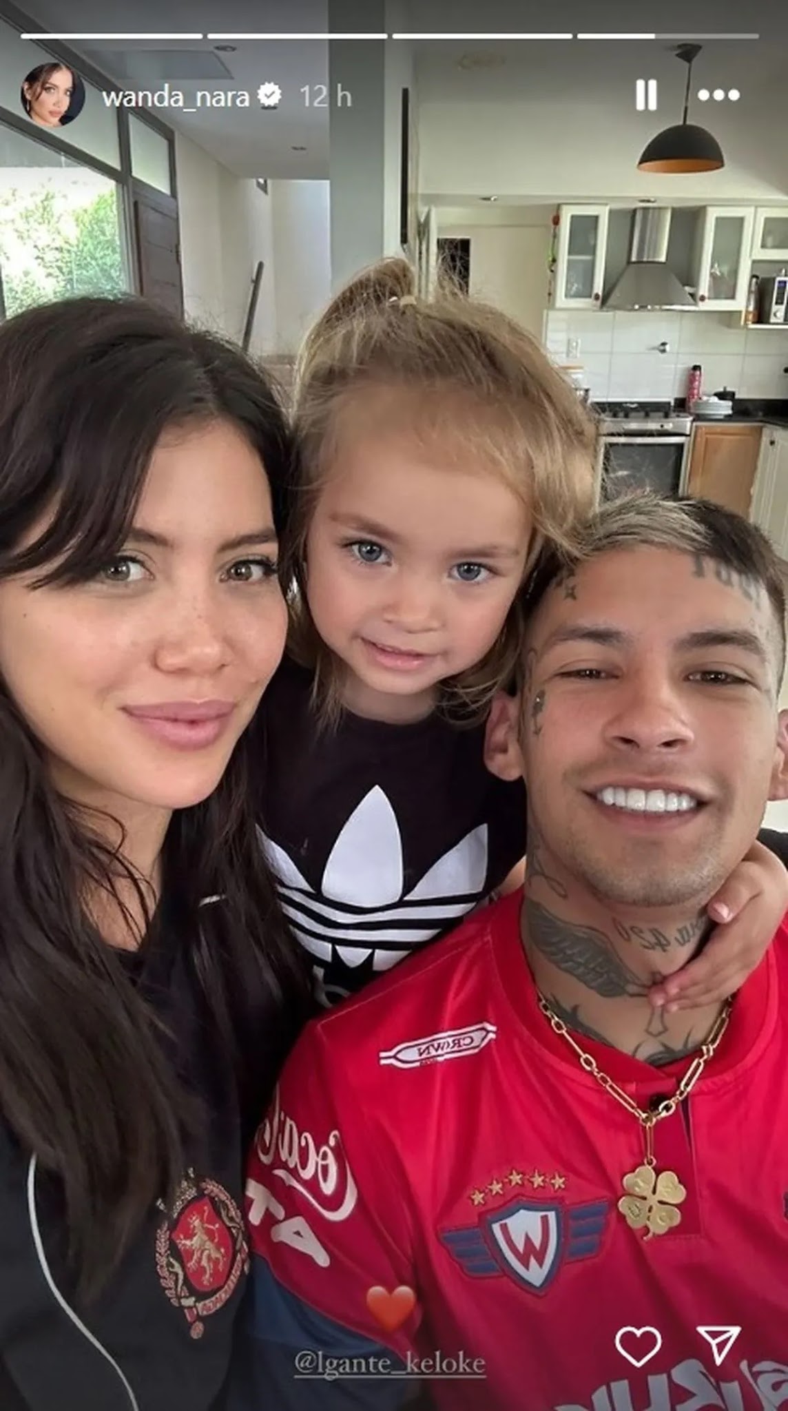 Wanda Nara compartió una sorpresiva foto familiar con L-Gante y su hija Jamaica desde sus historias de Instagram. En la imagen se puede ver a los tres en la cocina de una casa y a pura sonrisa.