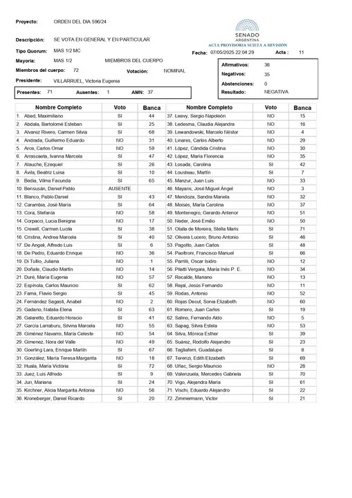 A continuación, el detalle completo de cómo votaron los senadores: