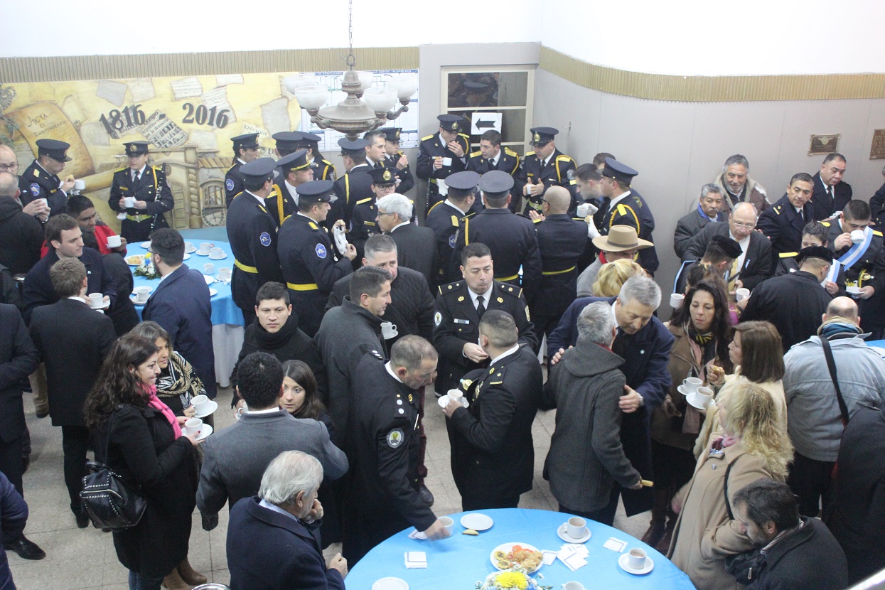 Como ya es tradición, más tarde hubo un desayuno patrio en el hall de ingreso del municipio con la presencia allí, de autoridades de los tres poderes del Estado, de fuerzas de seguridad, religiosas, educacionales y de la comunidad en general.