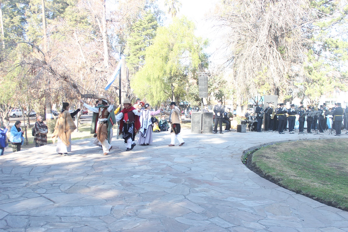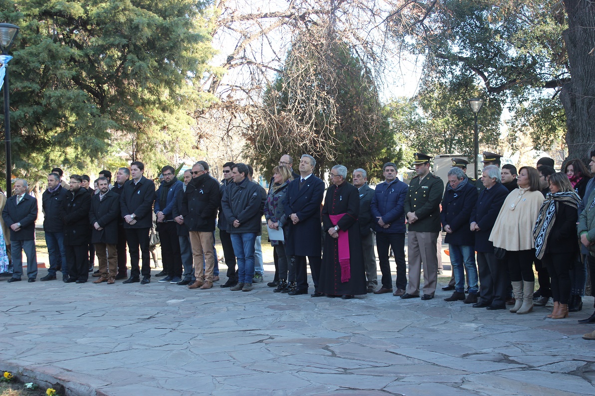 Luego en la plaza 9 de Julio se llevó a cabo el acto oficial por el Día de la Independencia. En ese caso, en representación del intendente Emir Félix, estuvo el secretario de Gobierno Gustavo Perret; además se hizo presente nuevamente el presidente del Concejo Deliberante Ricardo Vergara acompañado por ediles de los distintos bloques; otros funcionarios de departamentales y provinciales y público en general.